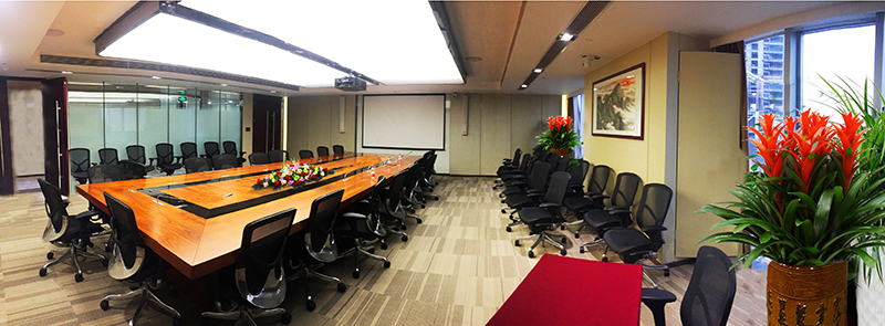 在會議室擺放綠植,擺放鴻運當(dāng)頭、龍血樹,桌面擺放紅掌。